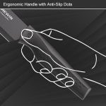 - NON-STICK & ERGONOMIC – The black coating on the blade ensures excellent non-stick and rust-resistant properties for our kitchen knives. Our ergonomic knife handle features anti-slip indented dots to ensure a firm and safe grip.