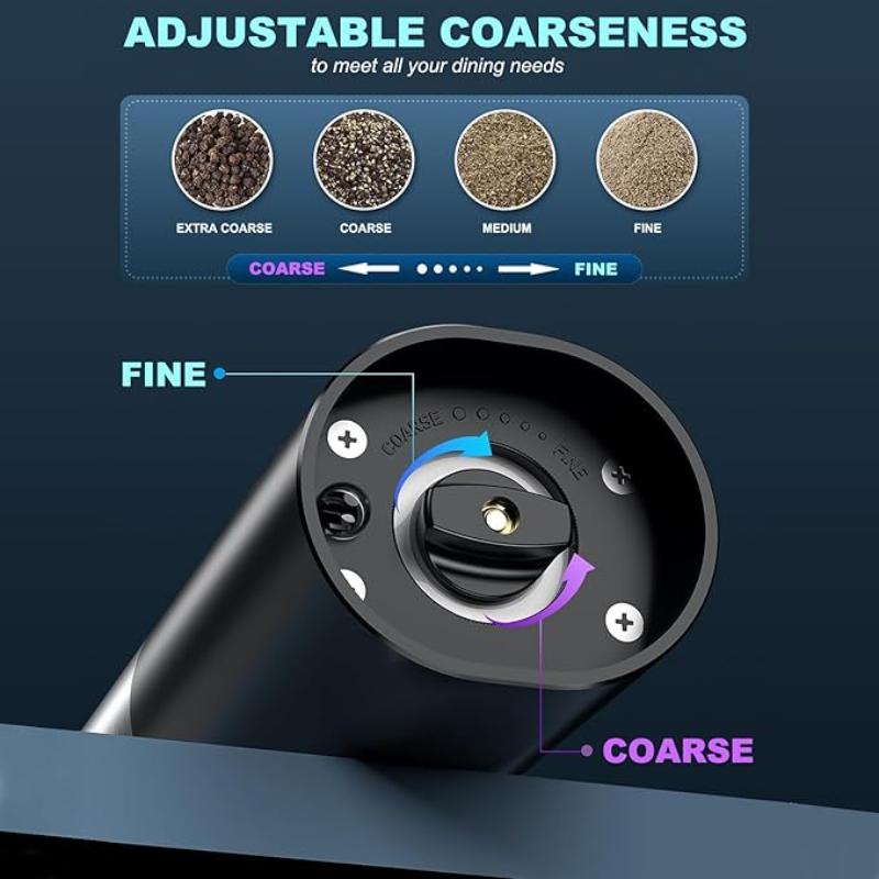 Upgrade your kitchen with the DERGUAM Rechargeable Electric Salt and Pepper Grinder Set, designed for effortless seasoning. Crafted from premium stainless steel, these sleek grinders feature an adjustable coarseness setting, allowing you to customize your grind from fine to coarse. The built-in LED light ensures precision, even in low-light settings. With a convenient charging base, you’ll never have to worry about replacing batteries. Perfect for home chefs and food enthusiasts, this modern grinder set brings style, efficiency, and convenience to your kitchen!